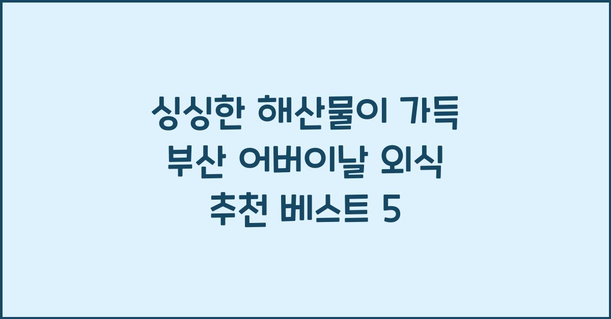 부산은 바다와 인접해 있어 신선한 해산물의 천국이라고 해도 과언이 아닙니다. 다가오는 어버이날, 부모님께 특별한 외식 경험을 선사하고 싶다면 ‘싱싱한 해산물이 가득! 부산 어버이날 외식 추천 Top 5’를 알아보세요. 가족의 소중한 시간을 함께 나누며, 맛과 즐거움을 동시에 선사할 수 있습니다. 부모님을 위한 특별한 요리와 서비스가 가득한 이들 레스토랑은, 맛뿐만 아니라 정성과 추억이 담긴 공간이기도 합니다.